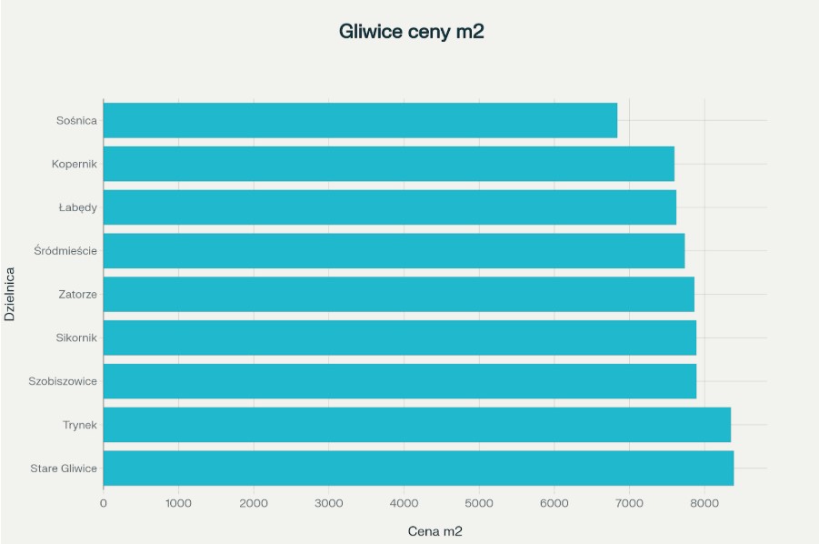Średnie ceny mieszkań za m² w dzielnicach Gliwic