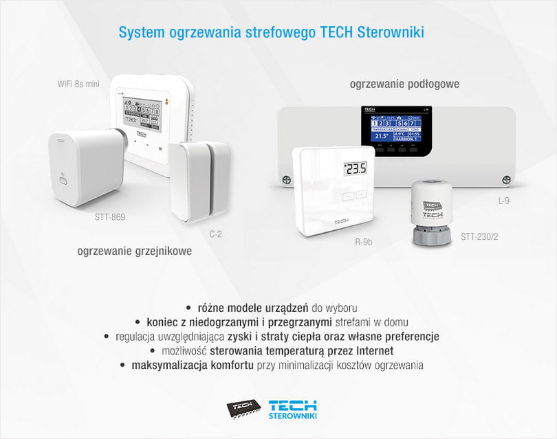 Strefowy system ogrzewania pomieszczeń został tak przygotowany, by dobrze radzić sobie z problemami przegrzanych i niedogrzanych pomieszczeń. Do wyboru są różne warianty urządzeń systemu ogrzewania podłogowego, jak i grzejnikowego. Dzięki temu temperaturą można zarządzać zarówno w pomieszczeniach, w których znajdują się grzejniki, jak i podłogówka. Ogrzewanie strefowe sprawia, że ciepło trafia zawsze do tych pomieszczeń, które tego potrzebują. Systemy sterowania ogrzewaniem umożliwiają łatwą zmianę parametrów w zależności od pory dnia, czy aktywności.
