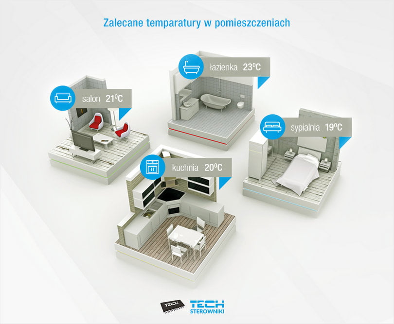 Najważniejsze wskazania temperatur dla poszczególnych pomieszczeń