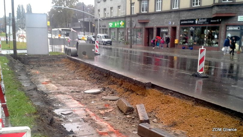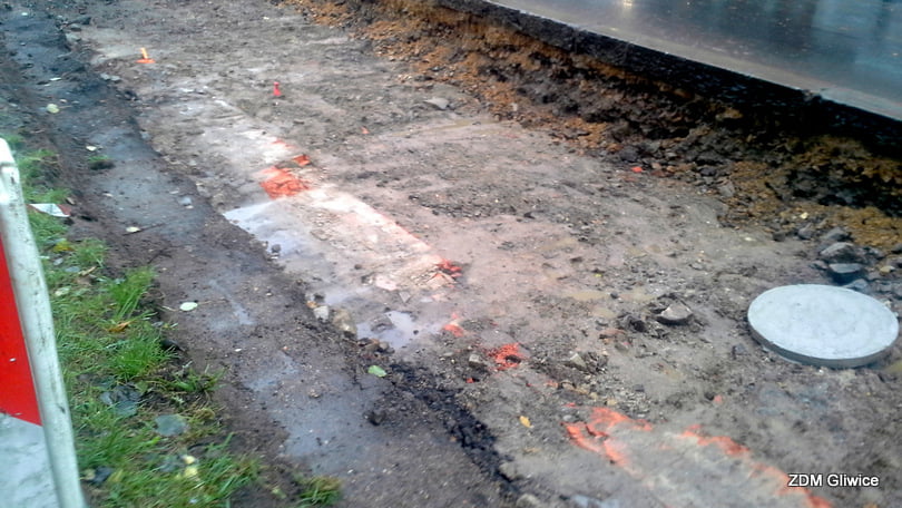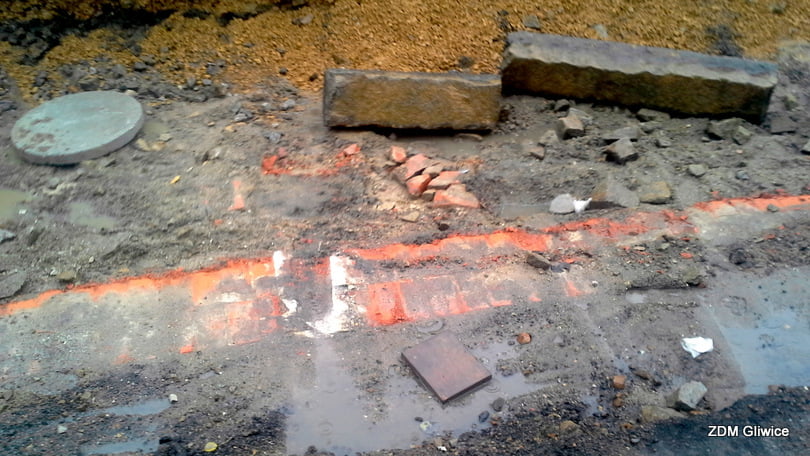 ? zawiadamia Zarząd Dróg Miejskich w Gliwicach. W środę odkopano fragmenty XIX-wiecznego muru znajdującego się po północnej stronie ulicy. Na miejscu jest już archeolog.