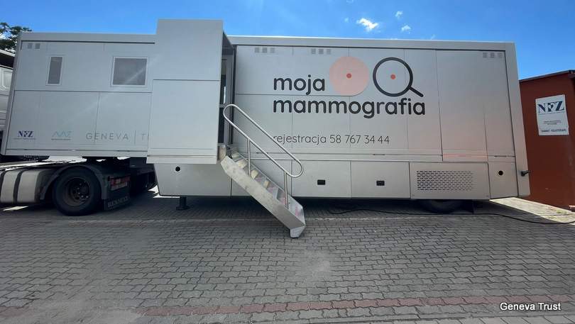 – Mammografia polega na wykonaniu czterech zdjęć rentgenowskich, po dwa dla każdej piersi. Nasze mammobusy dysponują wysokiej jakości mammografami – tłumaczy Andrzej Stencel, prezes firmy Geneva Trust Polska, która w ubiegłym roku zrealizowała ponad 255,3 tysięcy takich badań w ok. 5 tysiącach miejscowości we wszystkich województwach. – Dojeżdżamy do wielu miejsc w Polsce i dysponujemy wolnymi terminami – zaznacza Stencel.