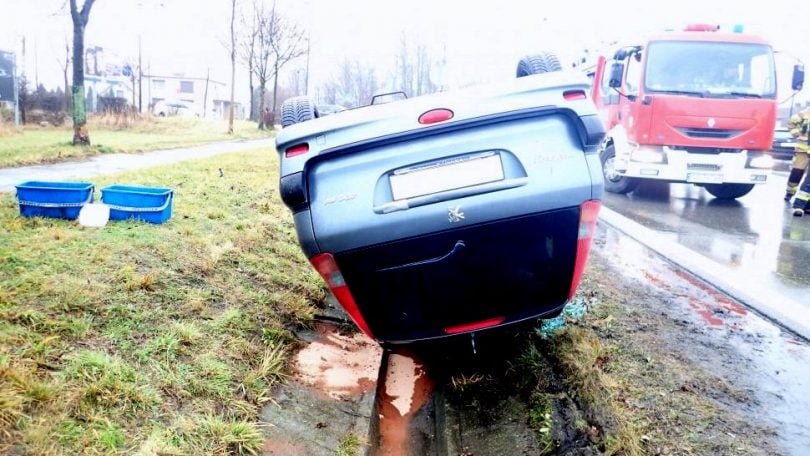 – Patrolowi drogówki dojazd do miejsca wypadku zajął minutę. Tam zauważyli, że w leżącym wciąż na dachu pojeździe za kierownicą znajduje się człowiek. Po podejściu bliżej wyczuli silną woń paliwa wydobywającego się z silnika. Z obawy na zagrożenie życia i zdrowia kierującego nim mężczyzny, jeden z funkcjonariuszy wybił boczną szybę Peugeota, wczołgał się do wnętrza, oswobodził kierowcę z pasa bezpieczeństwa, a następnie wyciągnął go z pomocą pozostałych funkcjonariuszy na zewnątrz. Po chwili na miejscu pojawiła się straż pożarna, która zabezpieczyła wyciek w paliwa, a także załoga pogotowia ratunkowego, która udzieliła pomocy kierowcy – relacjonuje sierż. szt. Marcin Rydel, zastępujący oficera prasowego KMP Gliwice.