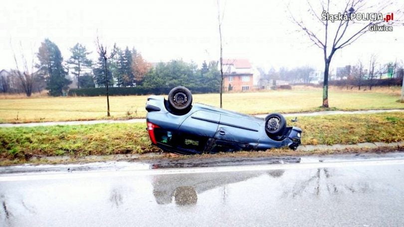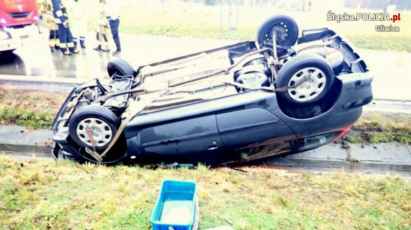 Policjanci z drogówki otrzymali informację o podejrzanie jadącym peugeocie, który poruszał się po DK88 od strony autostrady A1 w stronę centrum Gliwic. Zanim dotarli do kierującego, ten stracił panowanie nad pojazdem i dachował na zjeździe przy ul. Tarnogórskiej.