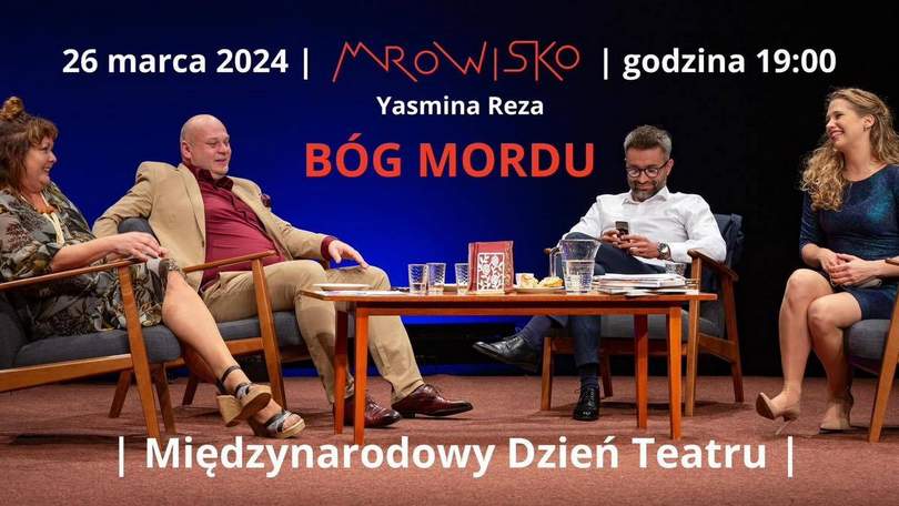 Dwa małżeństwa spotykają się, aby omówić niesforne zachowanie swoich pociech. Co się wydarzy? Spokojna i racjonalna rozmowa między dorosłymi? Może jednak coś mniej cywilizowanego? “Bóg mordu” to sztuka, która wystawiona zostanie na teatralnej scenie CKS Mrowisko we wtorek, 26 marca.