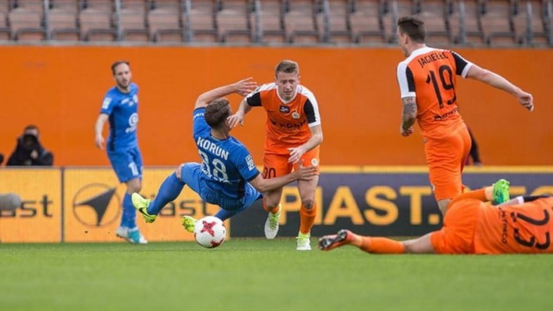W drugą połowę lepiej weszli podopieczni Dariusza Wdowczyka. W odstępie kilku minut Niebiesko-Czerwoni oddali dwa strzały z dystansu, ale zarówno Michal Papadopulos, jak i Uros Korun nie trafili w światło bramki.