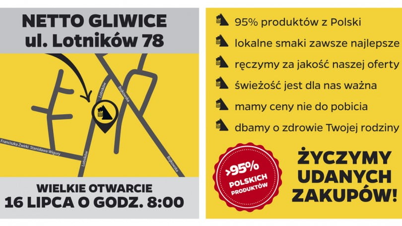 W czwartek, 16 lipca, o godz. 8, sieć handlowa Netto otworzy swój 339 sklep w Polsce, a drugi w Gliwicach (przy ul. Lotników 78). Z tej okazji na klientów czeka mnóstwo atrakcji.