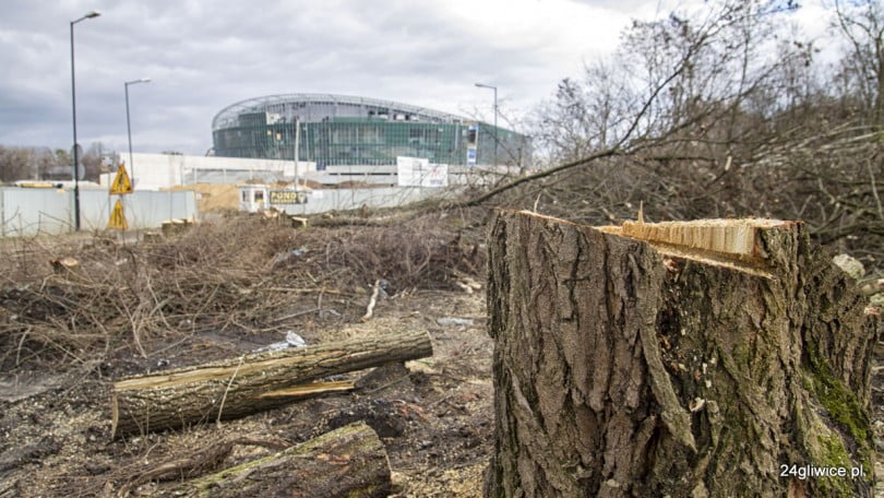 Trwa wielka wycinka drzew w rejonie Parku Chrobrego i budowanej Hali Gliwice. To przygotowanie do poszerzenia ul. Akademickiej, Panewnickiej i Kujawskiej.