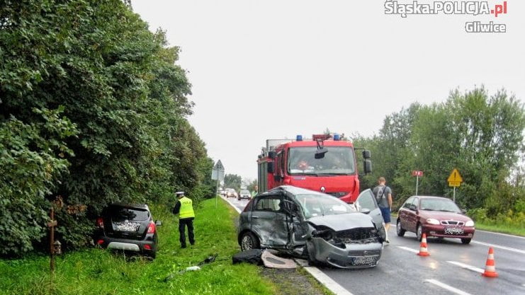 Z nieustalonych jeszcze przyczyn jadący od strony Gliwic fiat punto zjechał na przeciwny pas ruchu prosto pod koła opla. Siła zderzenia była tak duża, że kierujące pojazdami zostały zakleszczone w ich wnętrzach.