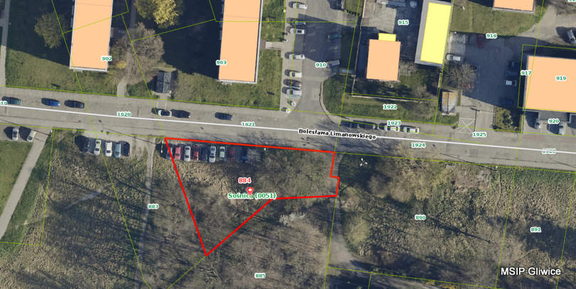 Przy ulicy Limanowskiego w Sośnicy miasto zamierza zbyć działkę nr 884 o nieregularnym kształcie. Vis-a-vis istniejącego osiedla, na niezagospodarowanym terenie może powstać budynek wielorodzinny.