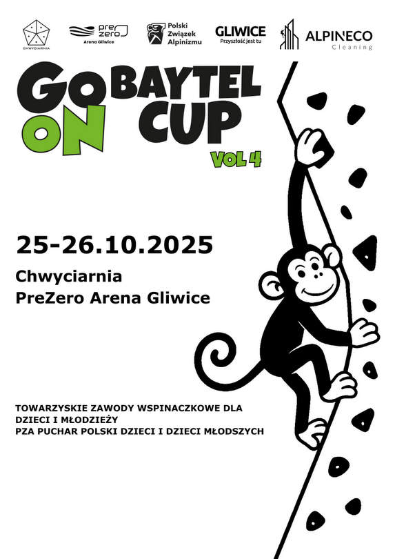 Trwa odliczanie do Go On Baytel Cup 2025, czyli największych w Polsce zawodów wspinaczkowych z liną dla Przedszkolaków, Dzieci Młodszych, Dzieci i Młodzików. Odbędą się w weekend – 25 i 26 października na Chwyciarni w PreZero Arena Gliwice.