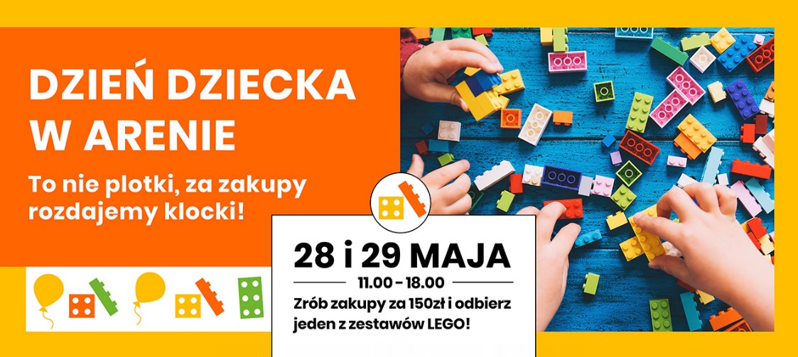 Każdy, kto w piątek 28 maja i sobotę 29 maja, w godzinach 11.00 – 18.00 przyjdzie do Areny i zrobi zakupy na minimum 150 PLN, otrzyma wspaniały prezent – zestaw kultowych klocków Lego!