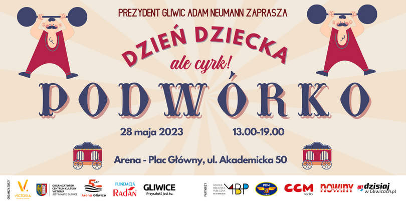 Chodźcie na „Podwórko”! Będzie zabawnie, beztrosko, twórczo, wystrzałowo! Tegoroczny Dzień Dziecka w Gliwicach upłynie pod hasłem: „Ale cyrk!”. Organizatorami wydarzenia są Centrum Kultury Victoria w Gliwicach i Arena Gliwice. Zaprasza Prezydent Gliwic Adam Neumann.