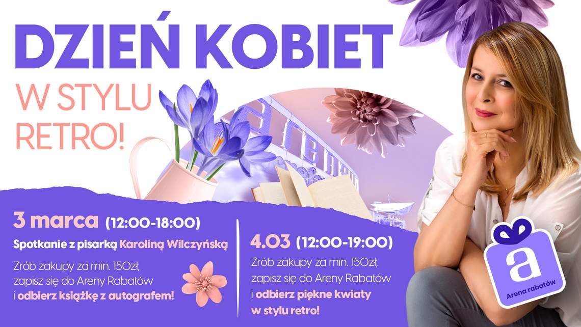 W dniach 3 i 4 marca (piątek i sobota) w Parku Handlowym Arena świętujemy Dzień Kobiet. W piątek odbędzie się spotkanie z popularną pisarką powieści dla kobiet – Karoliną Wilczyńską. Autorka tworzy zarówno romanse jak i powieści obyczajowe, ujęte w popularne cykle, np. „Stacja Jagodno”, „Rok na Kwiatowej”, „Kawiarenka za rogiem”, które cieszą się niesłabnącą popularnością wśród pań w całej Polsce. Będzie okazja porozmawiać o emocjach i sekretach kobiecej natury, a także otrzymać książkę z autografem.