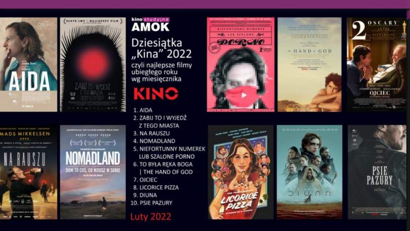 – Rok 2021, choć nieco normalniejszy niż rok 2020, wciąż nie przyniósł stabilizacji na rynku filmowym. Trwająca pandemia sprawia też, że trudno cokolwiek wyrokować na najbliższą przyszłość. Wielkie hollywoodzkie produkcje ostrożnie wracają na ekrany kinowe (w „Dziesiątce” ich honoru broni DIUNA), na czym nadal korzysta kino artystyczne, mające dzięki temu łatwiejszy dostęp do kin, ale też korzystające ochoczo z pomocy potentatów streamingowych, takich jaki Netflix (vide TO BYŁA RĘKA BOGA i PSIE PAZURY). I choć pandemii wszyscy mamy po dziurki w nosie, to jednak chciałoby się, żeby ta nieoczekiwana dobra passa filmów wyrafinowanych nigdy się nie skończyła – czytamy na stronie kina Amok.