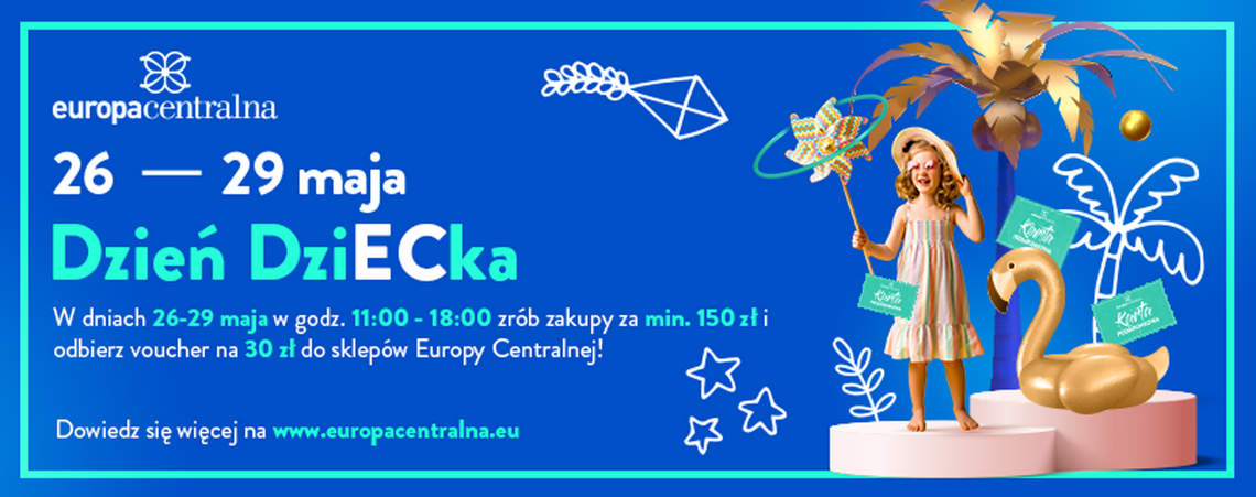 Wiele promocji, ofert specjalnych i niezapomniane atrakcje – w tym roku Europa Centralna będzie świętować Dzień Dziecka nie tylko przez jeden, ale kilka dni! Już 26 maja rusza wyjątkowa akcja, w której można zdobyć karty podarunkowe do wykorzystania w wybranych sklepach, lokalach gastronomicznych i miejscach rozrywki znajdujących się na terenie centrum.