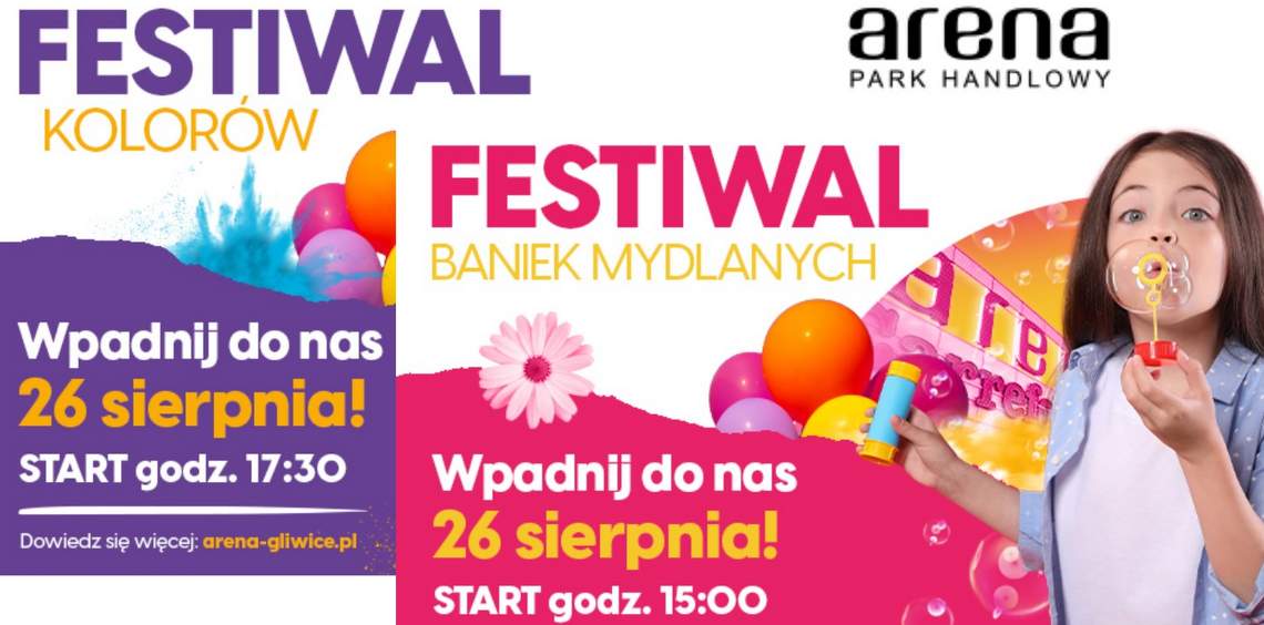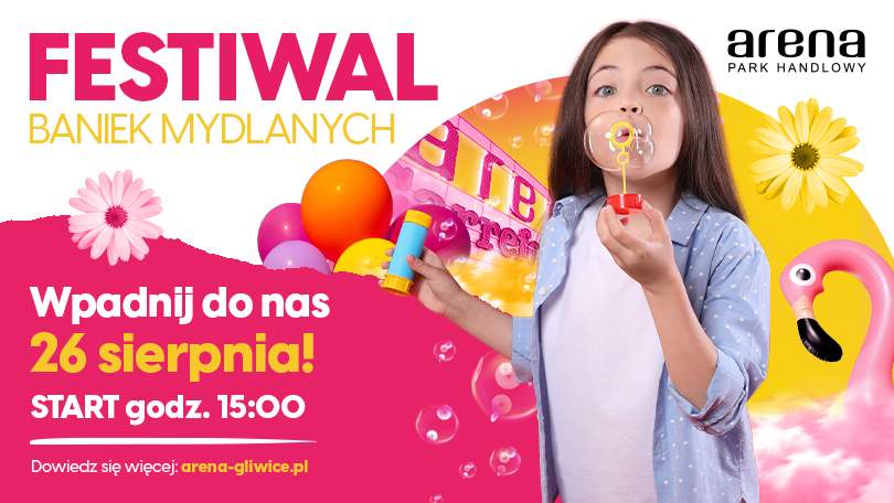A po zakupach – przygotujcie się na coś niesamowitego! Już o 15.00 na łące przy sklepie Decathlon na terenie Parku Handlowego Arena, wystartujemy z Festiwalem Baniek Mydlanych. Dzięki specjalnym urządzeniom będzie można wyczarować mydlane kule najróżniejszych rozmiarów – od zupełnie małych, po mieniące się wszystkimi kolorami tęczy giganty! To wspaniała zabawa dla dużych i małych! Dodatkowo, na wszystkie dzieci czekać będą bajkowe animacje, dmuchańce oraz oczywiście coś słodkiego!