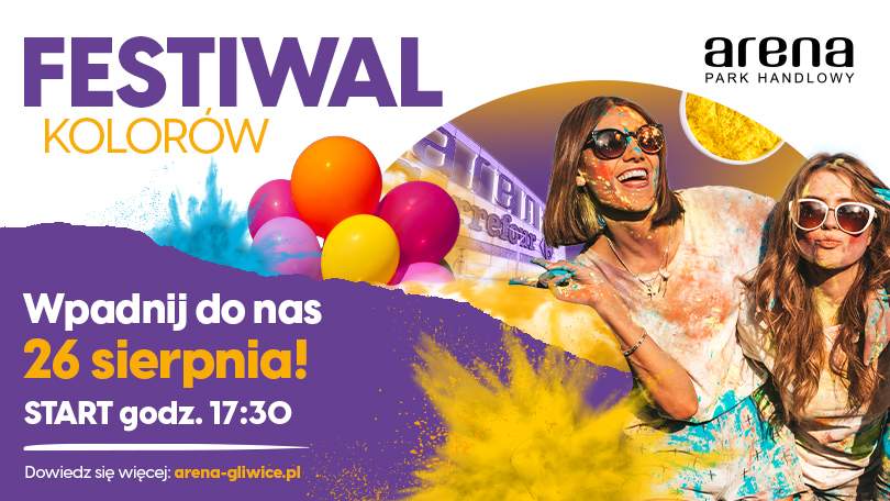 Choć lato ciągle jest z nami, wakacje dobiegają końca. Warto je skończyć z przytupem! Zapraszamy do Parku Handlowego Arena, gdzie w sobotę 26 sierpnia pomalujemy świat na wiele kolorów,