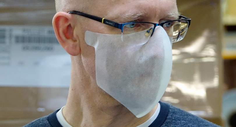 Maseczkę ochronną opracowała gliwicka firma Etisoft, wykorzystując do tego wiedzę i doświadczenie w produkcji etykiet. Samoprzylepna niemedyczna maseczka ochronna jest z założenia produktem jednorazowego użytku, ale jak zapewnia producent, może być wygodnie stosowana nawet przez kilka godzin.