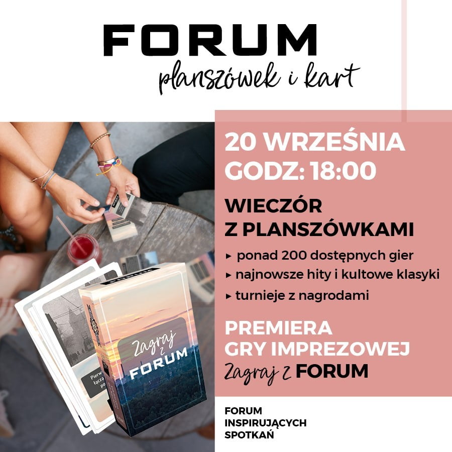 Premiera gry już w piątek (20 września) o godzinie 18:00, w ramach kolejnego Wieczoru z Planszówkami organizowanego z Silesia on Board. „Zagraj z Forum” to imprezowa gra karciana inspirowana popularnymi teleturniejami. Tutaj prawidłowe odpowiedzi wymyślają gracze. Gra przewiduje 4 tryby rozgrywki.