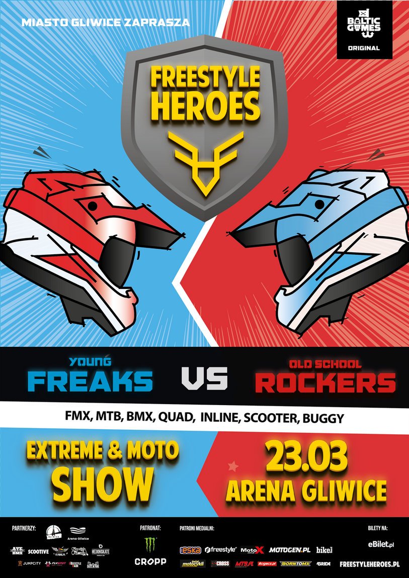 Do wyjątkowego wydarzenia, jakim jest Freestyle Heroes, pozostało niewiele czasu. Już 23 marca Miasto Gliwice zaprosi wszystkich do Areny Gliwice, najnowocześniejszej hali widowiskowej w Polsce, na pierwsze polskie show sportów ekstremalnych.