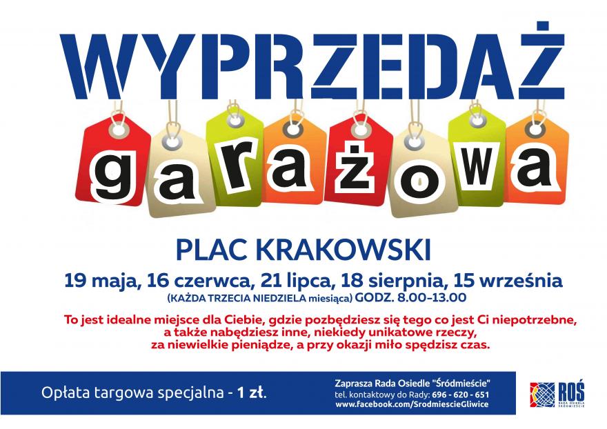 To idealna okazja, by pozbyć się zbędnych rzeczy, kupić tanio inne, unikatowe – 19 maja ruszają cykliczne wyprzedaże garażowe na pl. Krakowskim. Impreza będzie odbywać się w każdą trzecią niedzielę miesiąca, do 15 września.