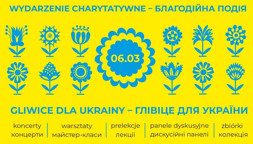 „Gliwice dla Ukrainy/ Глівіце для України” to charytatywne wydarzenie, które z inicjatywy wielu środowisk, odbędzie się w Cechowni przy ul. Bojkowskiej. Panele dyskusyjne, duża dawka wiedzy, jak mądrze pomagać Ukrainie oraz doskonała muzyka – taki jest plan na najbliższą niedzielę, 6 marca!