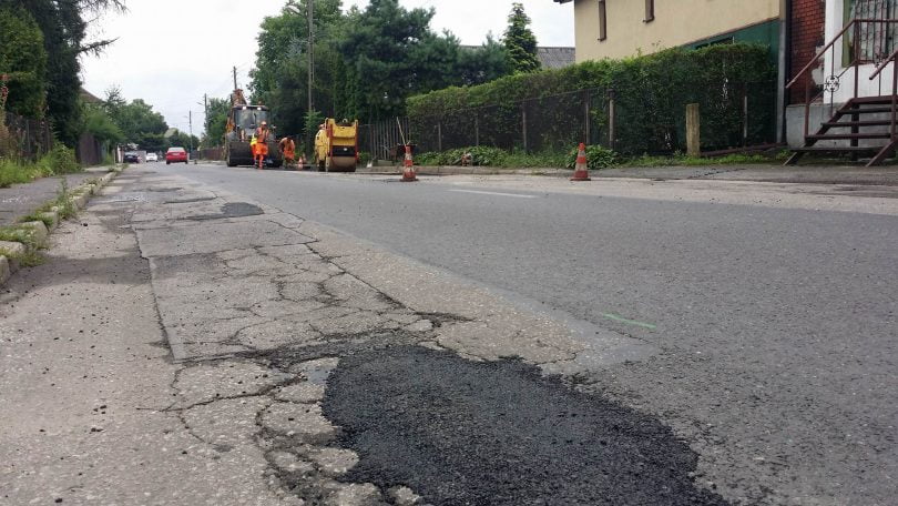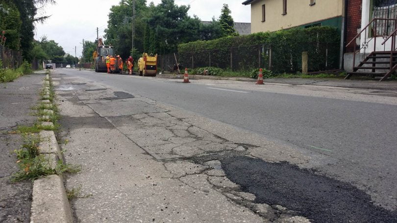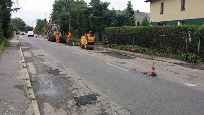 Drogowcy uwijają się więc, żeby kolarze nie zrobili sobie krzywdy i pospiesznie zalepiają dziury na trasie przejazdu.