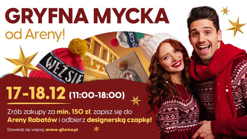 Zima trzyma, a w dodatku przed Świętami masz tyle na głowie… – Wpadnij w najbliższy weekend do Parku Handlowego Arena! Podarujemy Ci mnóstwo ciepła, a wszystkie problemy zdejmiemy z… głowy. W dodatku sprezentujemy gryfną myckę, jakiej nie ma nikt! – obiecuje Arena.