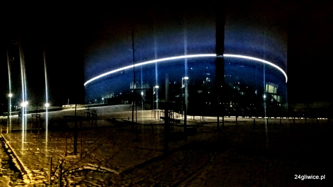 Dzięki zewnętrznemu oświetleniu Hali widowiskowo-sportowej w Gliwicach z daleka widać kształt obiektu. Wszystko przez zamontowany na elewacji system LED, a dokładniej na krawędzi dachu.
