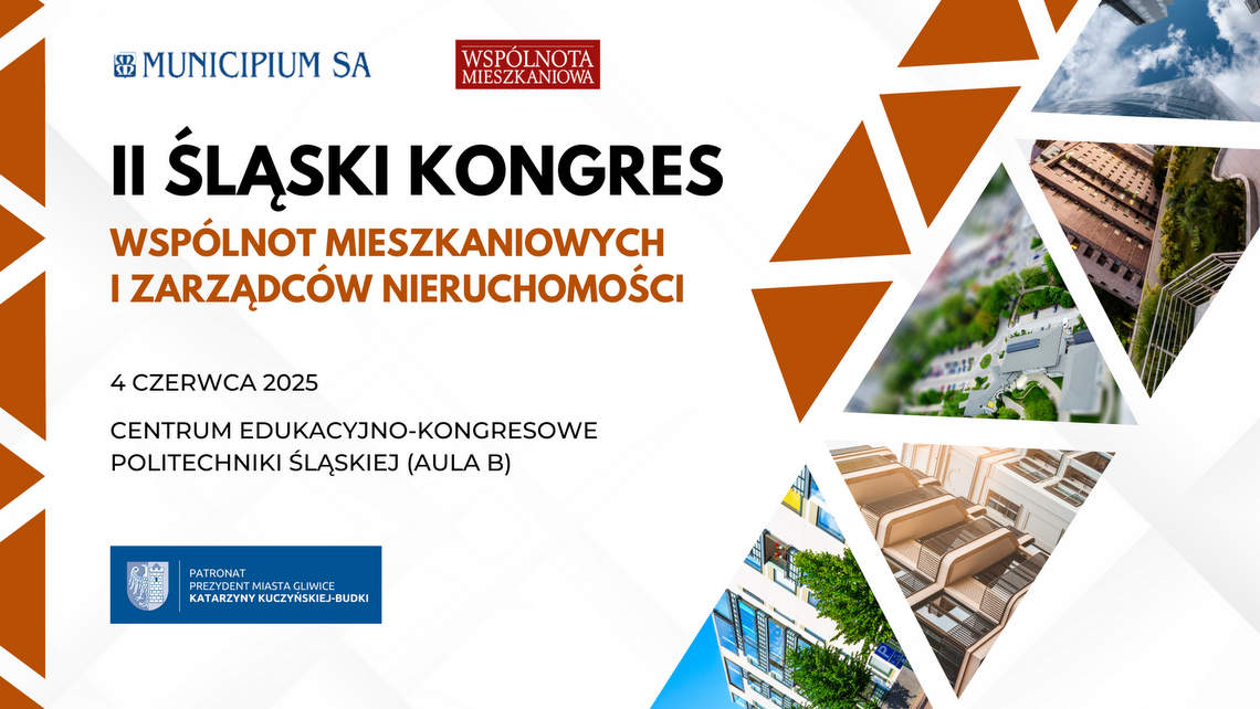 Organizatorzy zapraszają do udziału w II Śląskim Kongresie Wspólnot Mieszkaniowych i Zarządców Nieruchomości, który odbędzie się 4 czerwca 2025 r. w Centrum Edukacyjno-Kongresowym Politechniki Śląskiej.