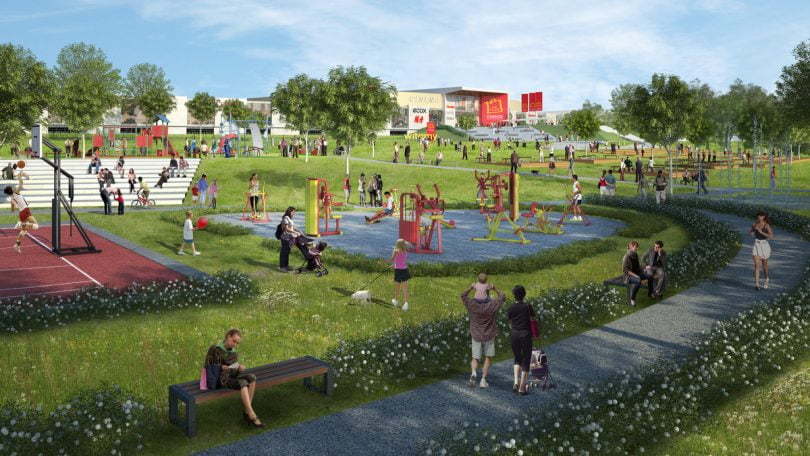 W ramach prac drogowych powstanie m.in. pięć rond, ścieżki rowerowe oraz nowe drogi dojazdowe. Jednocześnie trwają prace projektowe związane z rewitalizacją terenu poprzemysłowego, na którym zostanie stworzona przestrzeń rozrywkowo-edukacyjna. W jej ramach inwestor, firma IKEA Centres zapowiada budowę ogrodu botanicznego, amfiteatru, sztucznej plaży, fontanny, miejsc do grillowania, ścieżek rowerowych i biegowych oraz trasy dla narciarzy biegowych i ogrodzonego miejsca dla osób z psami. Założenia szwedzkiego koncernu zakładają, by w nowym centrum współgrały akcenty skandynawskie i śląskie.