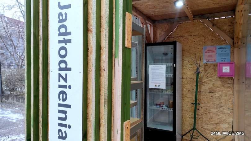 Za budynkiem MDK przy ulicy Barlickiego 3, od strony parkingu, od pewnego czasu funkcjonowała “jadłodzielnia” – specjalnie zabudowana lodówka, gdzie każdy, kto miał zbędne pożywienie mógł pozostawić je dla bardziej potrzebujących. Ostatnio postanowiono o jej rozbudowie, która właśnie została zakończona.