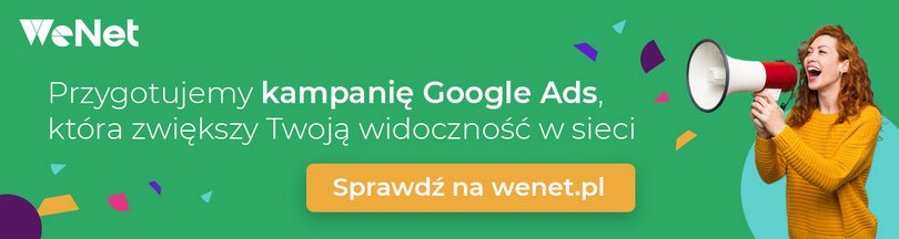 Jeśli chcesz dowiedzieć się, jak wygląda proces tworzenia reklamy w Google Ads, to wejdź na WeNet.pl. Możesz zamówić również darmową konsultację – już teraz przekonaj się, co mogą dla Ciebie zrobić doradcy internetowi. Wykorzystaj potencjał swojej firmy i poznaj siłę płatnych kampanii w wyszukiwarce.