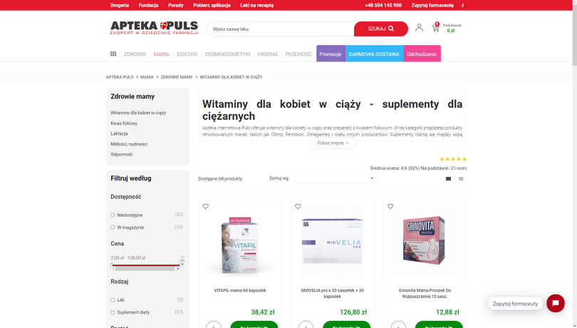 Jak już wiesz – kluczowa jest suplementacja kwasu foliowego. Praktyka pokazuje, że katalog składników, które są potrzebne do prawidłowego rozwoju matki oraz dziecka jest zdecydowanie większy. Z pomocą przychodzi tutaj apteka online – na stronie aptekapuls.pl znajdziesz szereg godnych uwagi pozycji. Podczas zakupów nie zapominaj o tym, aby sięgnąć po tabletki dla kobiet w ciąży z żelazem. Sięgając po takie preparaty opracowane z myślą o zapewnieniu dobrostanu zarówno w czasie ciąży jak i w przypadku matek karmiących masz pewność, że zyskujesz w pełni bezpieczny i skuteczny produkt.