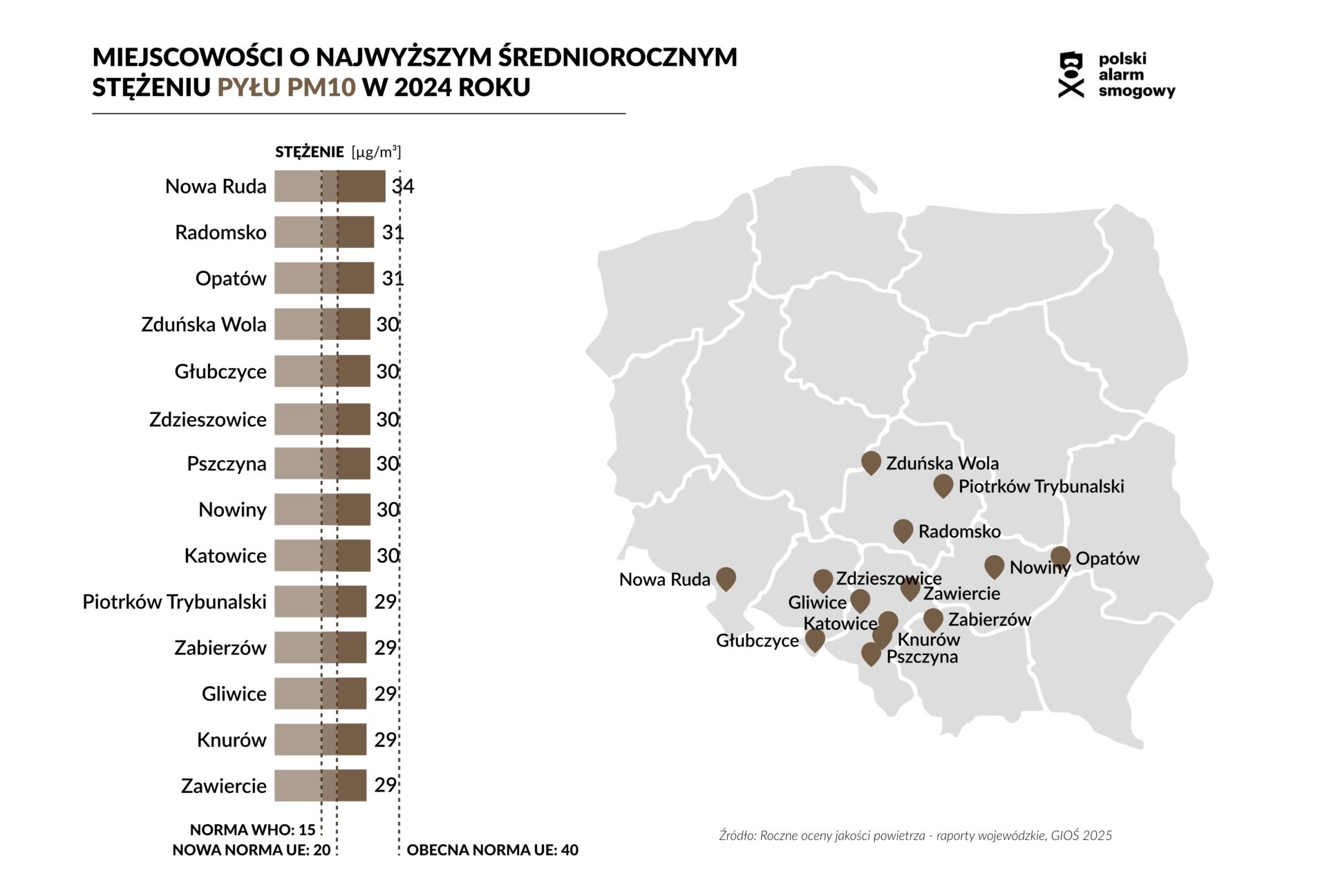 – To bardzo niepokojące zjawisko – stwierdza Piotr Siergiej, rzecznik Polskiego Alarmu Smogowego. – Prezentujemy nasz ranking już po raz dziesiąty i do tej pory obserwowaliśmy spadek stężeń. Czy obecny wzrost to tylko chwilowe wahnięcie, czy może początek nowego trendu prowadzącego nas na powrót do smogowej przeszłości? Pewne jest jedno: w 2025 roku proces likwidacji “kopciuchów” w Polsce gwałtownie zahamował, a program Czyste Powietrze przechodzi poważny kryzys. Dwa lata temu wsparcie programu ze strony władz krajowych było jednoznaczne, co znalazło swój wyraz w rekordowej liczbie wniosków o dotację w 2024 roku – dodaje.