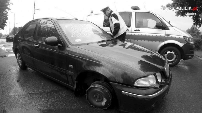 – Trudno wskazać dzień, w którym gliwiccy policjanci nie zatrzymaliby nietrzeźwych kierowców lub przynajmniej tych po użyciu alkoholu. W poniedziałek na przykład zatrzymano dwóch nietrzeźwych i czterech po użyciu alkoholu, a podczas weekendu sześciu nietrzeźwych i pięciu po użyciu. Wszystkich czekają sprawy sądowe, grzywny oraz wyroki. Poniżej jedno z wielu zdarzeń, różniące się od innych tym, że prowadzący auto nie zauważył, iż… jedzie na trzech kołach – mówi podinspektor Marek Słomski, oficer prasowy KMP Gliwice.
