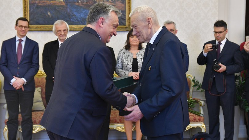 fot. Kancelaria Sejmu/Łukasz Błasikiewicz (Odznaczenie marszałka seniora Sejmu Kornela Morawieckiego Krzyżem Średnim Orderu Zasługi Węgier politycznych, lic. cc-by-2.0.), kadrowane. Zdjęcie pierwotnie ukazało się na flickr.