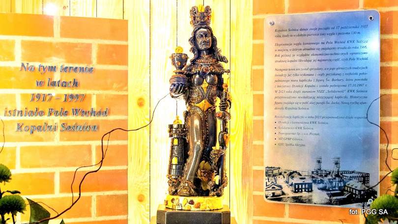 Nowy wygląd tego niewielkiego obiektu, to efekt współdziałania dyrekcji kopalni, związków zawodowych i zarządów kilku firm. Na specjalne zamówienie została wykonana nowa rzeźba, bo oryginalna, stuletnia figura świętej znajduje się w parafii św. Jacka w Sośnicy.