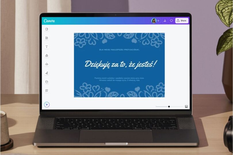 Podstawowa wersja Canvy jest darmowa i w zupełności wystarczy do zaprojektowania kartki. Dostęp do dodatkowych szablonów, narzędzi opartych na AI – jak generowanie grafik z opisu tekstowego czy usuwanie niechcianych elementów ze zdjęć – wymaga planu Pro. Ale przy tworzeniu kartek okolicznościowych darmowa wersja i tak pozwala uzyskać efekt, który naprawdę robi wrażenie.