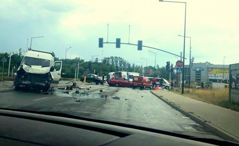 – Pojazd pogotowia poruszał się ulica Kujawską w kierunku centrum, pojazd dostawczy przejechał w cyklu zielonego światła ulicą Panewnicką w kierunku ulicy Robotniczej, natomiast samochód osobowy oczekiwał na ulicy Panewnickiej, widząc przemieszczający się pojazd uprzywilejowany. W wyniku przejechania przez skrzyżowanie karetką pogotowia w cyklu światła czerwonego, została ona uderzona w bok przez pojazd dostawczy, a następnie odrzucona na stojący samochód osobowy – wyjaśnia Pochwatka.