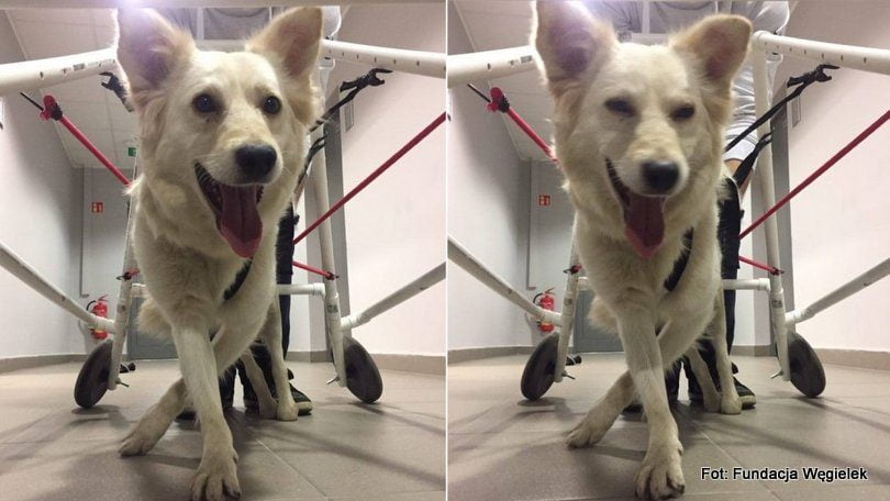 Cierpiąca na czterokończynowe porażenie Agnes – trzyletnia kundelka – wreszcie może zacząć się samodzielnie przemieszczać.