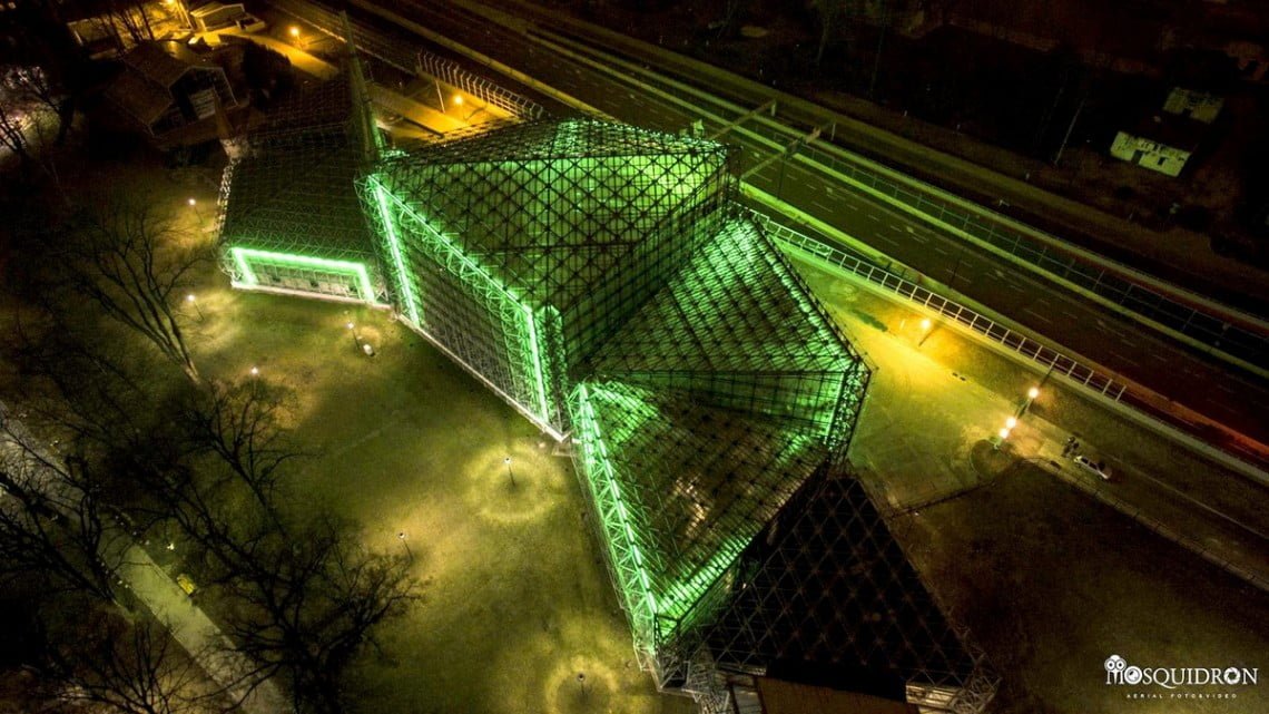 Efektowna iluminacja gliwickiej Palmiarni. Ten obiekt to pierwszy budynek oświetlony w ramach masterplanu ?Nowe światło dla Gliwic. Równowaga | Praca | Życie? ? koncepcji iluminacji miejskiej przestrzeni w Gliwicach.