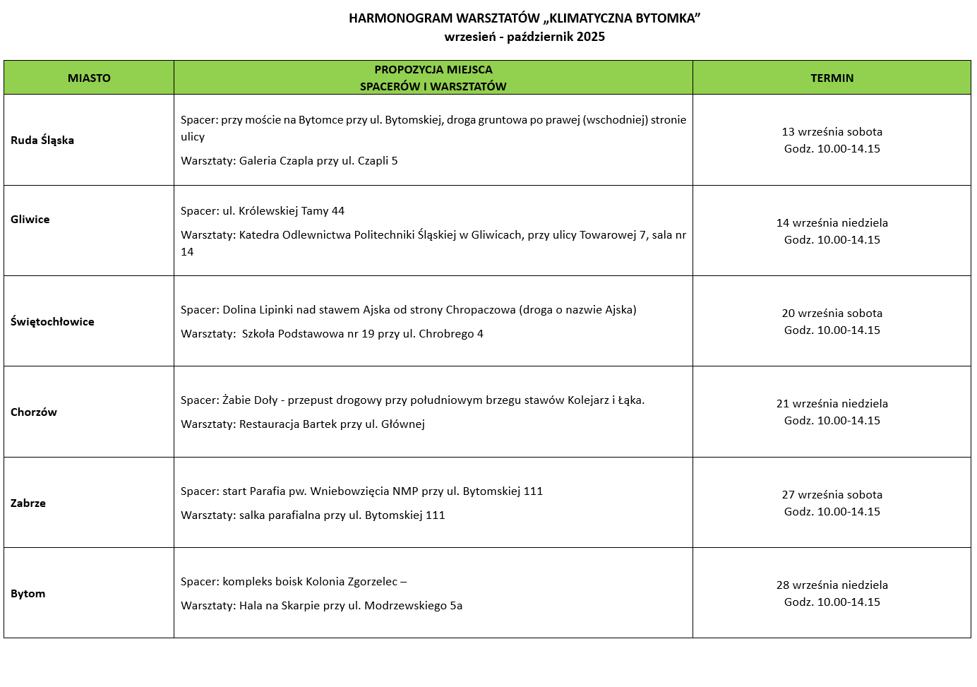 Projekt „Klimatyczna Bytomka” realizowany jest wspólnie z Fundacją Zdrowa Rzeka. Szczegółowe informacje i formularz rejestracyjny dostępne są na stronie metropoliagzm.pl, w zakładce Działania Metropolii > Klimatyczna Bytomka. (https://metropoliagzm.pl/klimatyczna-bytomka/)