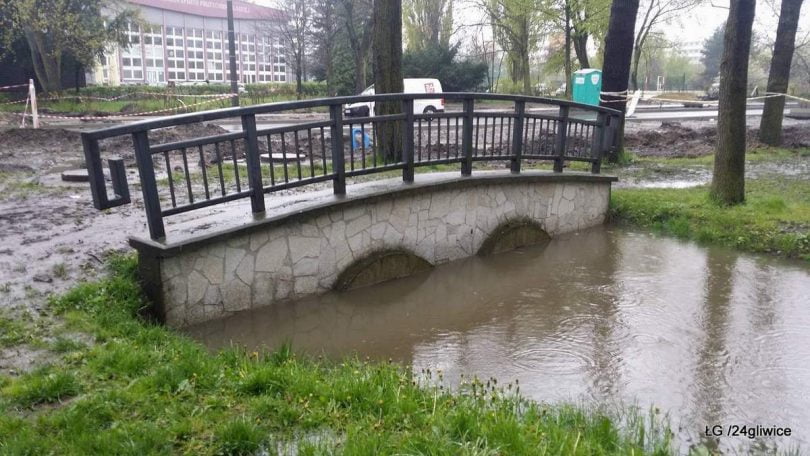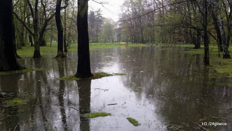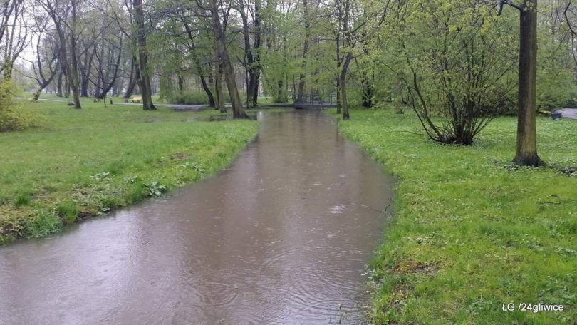 Podtopione zostały fragmenty Parku Chrobrego (obok Hali Gliwice)