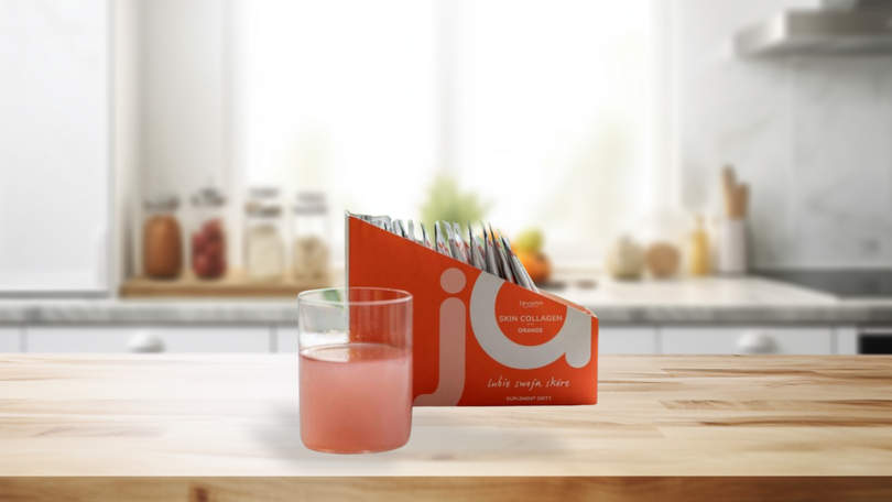 Jedno opakowanie Levann “jA” Skin Collagen zawiera 30 jednoporcjowych saszetek, które wystarczają na miesiąc suplementacji. Rozpuszczając proszek w wodzie, można przygotować kolagen do picia – to atrakcyjna alternatywa dla łykania kapsułek albo tabletek. Saszetka z proszkiem może pomieścić wyższą porcję kolagenu – 5 g w jednej porcji.