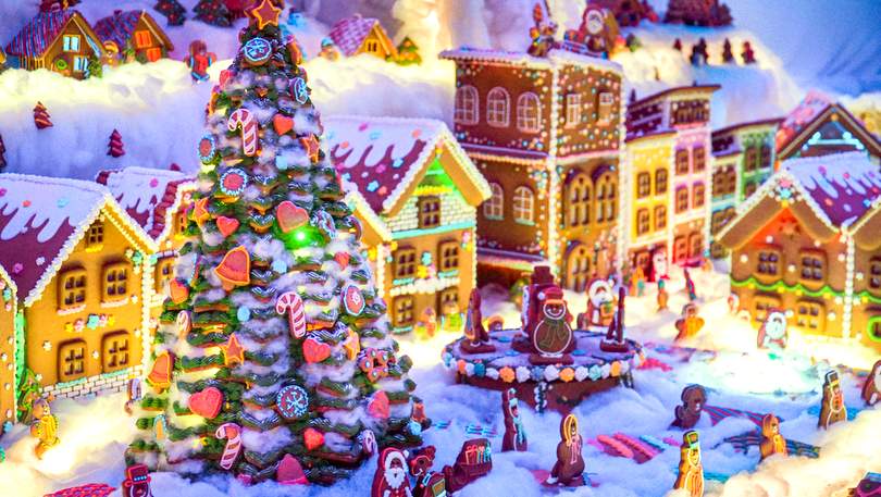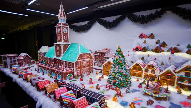 W sercu ekspozycji rozciąga się piernikowe miasto stworzone z ponad 1,5 tony aromatycznego ciasta. Aromatyczny zapach to rezultat użycia 17 kilogramów miodu, 3 kilogramów przypraw korzennych i setek godzin ręcznej pracy. Każdy detal pokrywa lukrowa pierzyna z 310 jaj, 95 cytryn i 22 kilogramów cukru pudru, tworząc piernikową krainę.