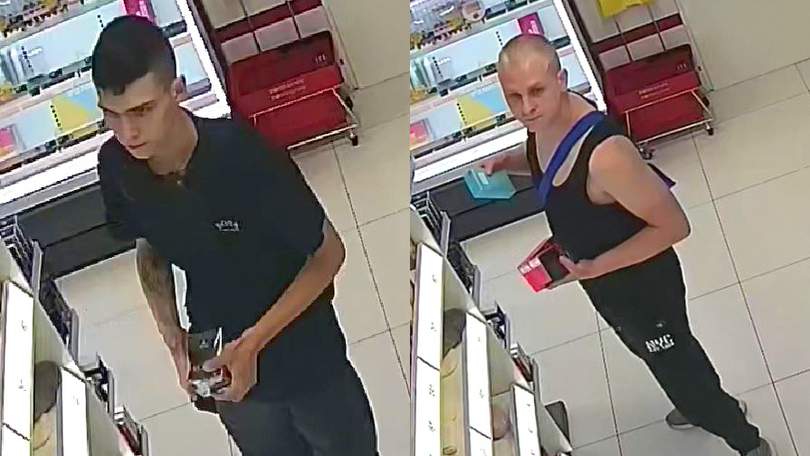 Z drogerii Rossmann obok Radiostacji ukradli artykuły warte prawie 1000 zł. Teraz wizerunek podejrzanych opublikowała policja z prośbą o pomoc w ustaleniu personaliów dwóch widocznych na zdjęciach mężczyzn.
