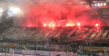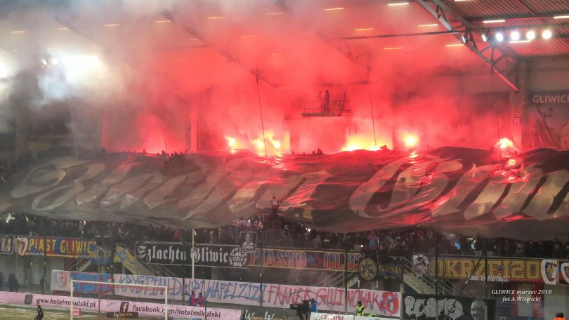 [perfectpullquote align=”full” bordertop=”false” cite=”” link=”” color=”” class=”” size=””]Dwa dni później, w czwartek, na wniosek policji Prokuratura Rejonowa Gliwice-Wschód zastosowała dozory policyjne oraz poręczenia majątkowe wobec kolejnych czterech stadionowych chuliganów.[/perfectpullquote]Mężczyźni mają po 20, 24, 27 i 28 lat. Zostali zatrzymani przez policjantów z Wydziału Kryminalnego KMP w Gliwicach po trwającym już wiele miesięcy dochodzeniu. Wszyscy usłyszeli podobne zarzuty, związane z zakłóceniem meczu. Dozór policji poprzez stawiennictwo trzy razy w tygodniu w komisariacie oraz poręczenie majątkowe w kwocie po 5 tys. zł każdy to środki zapobiegawcze, jakie zastosował prokurator do czasu rozprawy sądowej. Policja zapowiada, że to jeszcze nie koniec zatrzymań…