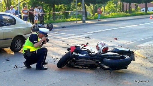 45-letnia gliwiczanka kierująca Skodą Octavia wymusiła pierwszeństwo na ul. Robotniczej i zderzyła się z motocyklem marki BMW.