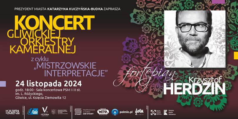 Tym razem jednak, organizatorzy postanowili zmienić dotychczasową formułę klasycznego programu koncertu i do udziału zaprosili wybitnego polskiego artystę, kompozytora, pianistę, aranżera, dyrygenta i producenta płytowego Krzysztofa Herdzina. Usłyszymy autorski program, który muzyk wykona wraz z Gliwicką Orkiestrą Kameralną. To materiał z płyty, którą Herdzin – jako pierwszy polski kompozytor – nagrał w słynnym, londyńskim Abbey Road Studio wraz z orkiestrą Academy Of St Martin in The Fields.